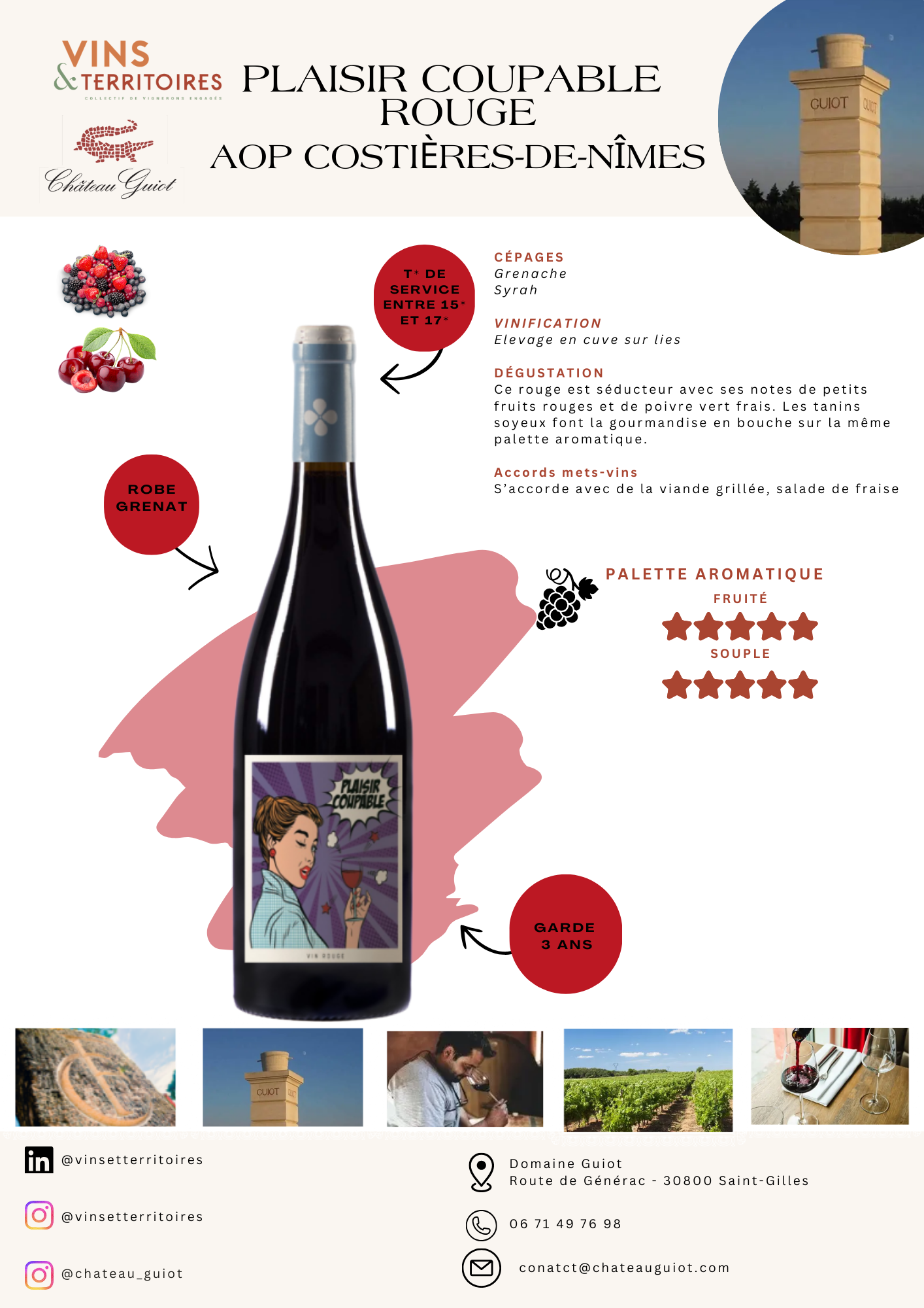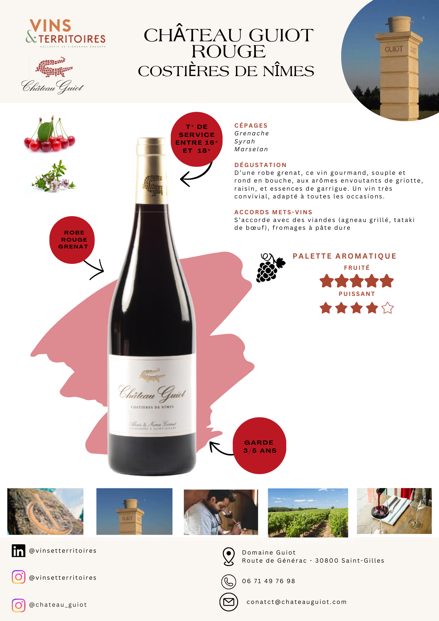 Rouge rond et fruité, tanins souples. Costières de Nîmes accessible qui rassure par son appellation et garantit rotation et marge confortable.