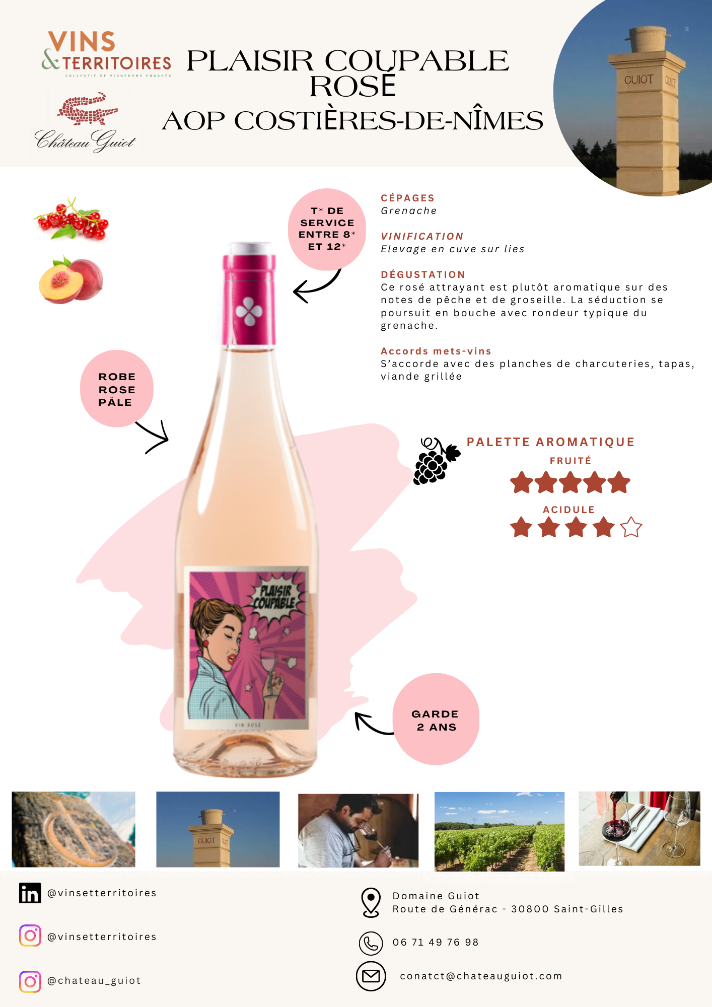 Rosé pâle, fruits rouges frais. Cuvée de terroir qui permet aux cavistes et restaurateurs de proposer un rosé identitaire, alternatif qualitatif aux Provence.