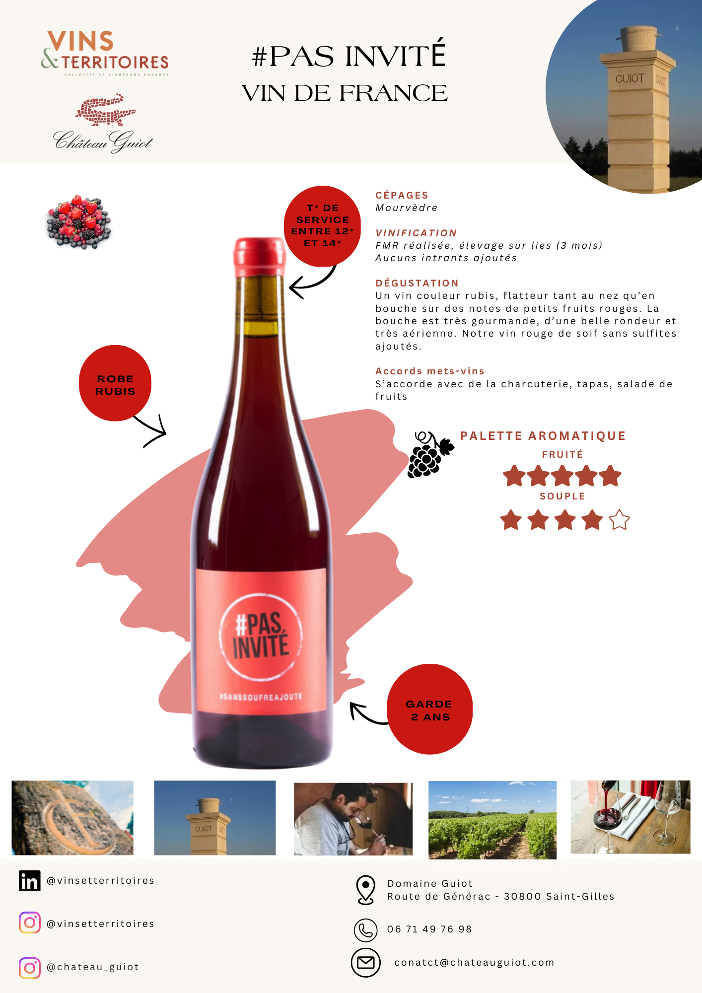 Un vin couleur rubis, flatteur tant au nez qu'en bouche sur des notes de petits fruits rouges. La bouche est très gourmande, d'une belle rondeur et très aérienne. Notre vin rouge de soif sans sulfites ajoutés.