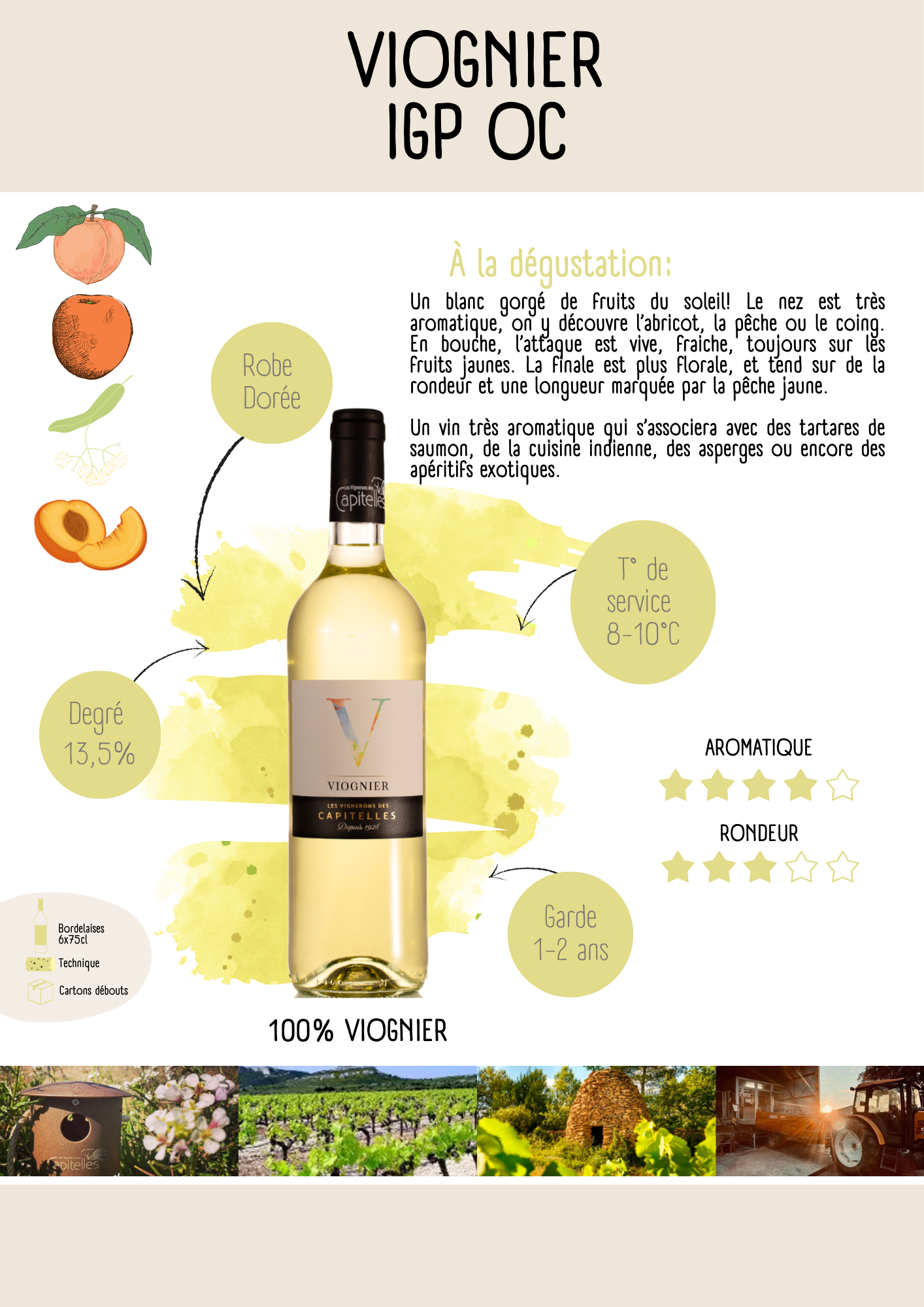 Abricot, fleurs blanches, bouche ample. Blanc de séduction, qui permet aux cavistes et restaurants de valoriser un cépage apprécié, bien placé en prix et séduisant en accords mets raffinés.