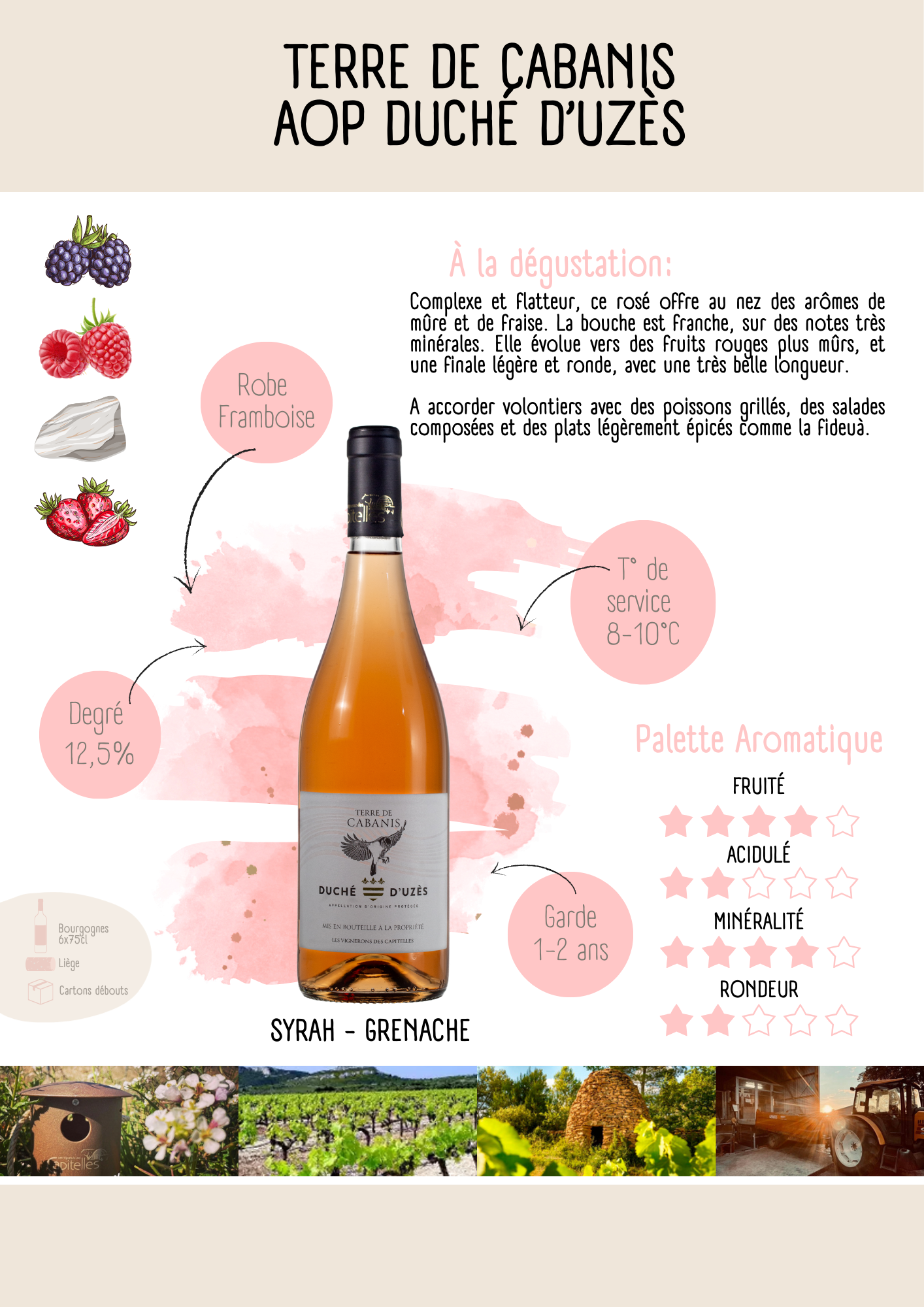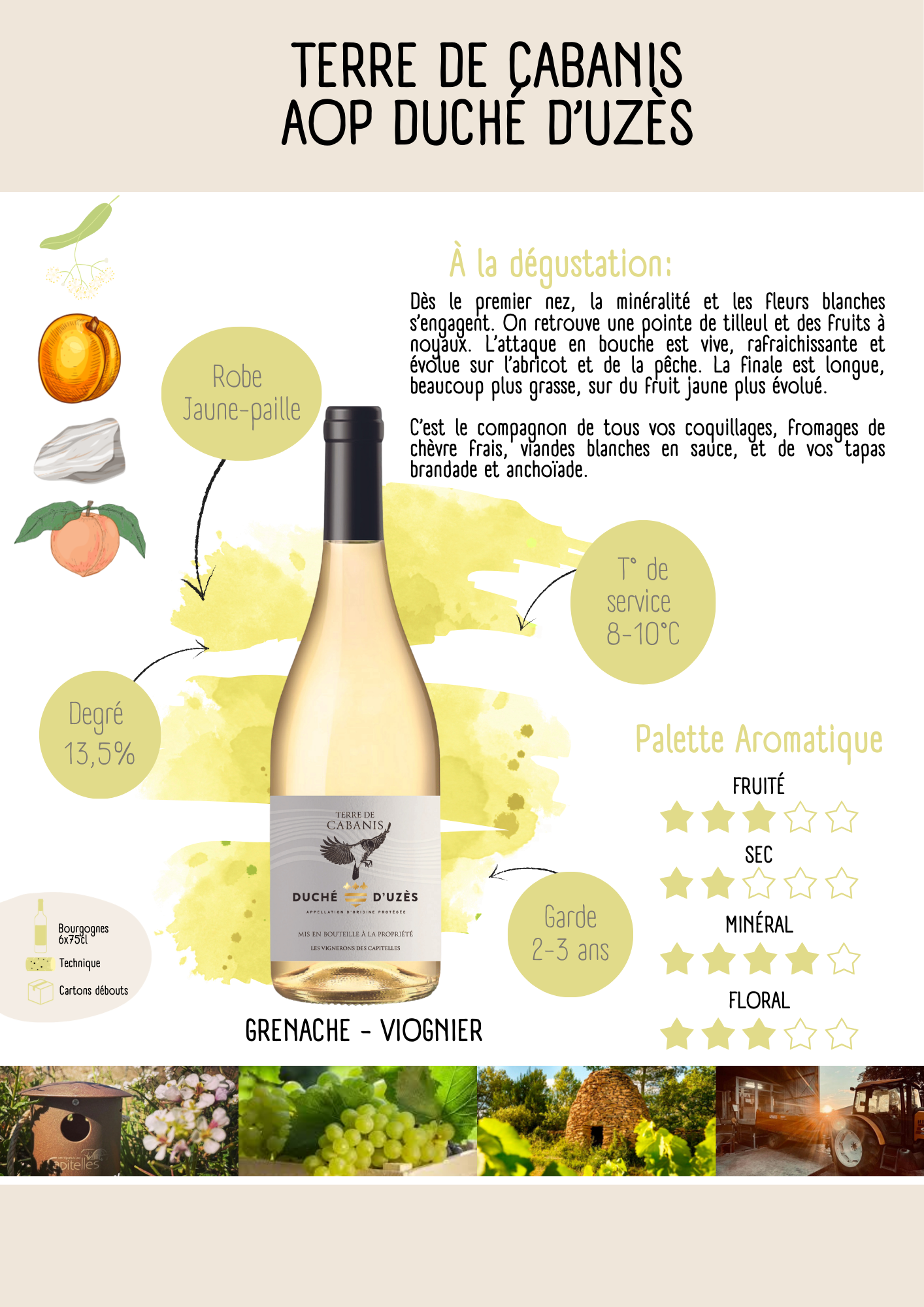 Frais, notes de fleurs et agrumes. Blanc de terroir du Duché d’Uzès qui valorise une carte et séduit une clientèle curieuse, avec un rapport qualité/prix attractif.