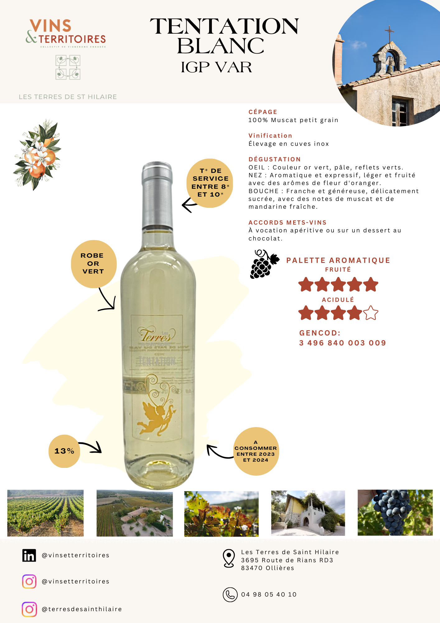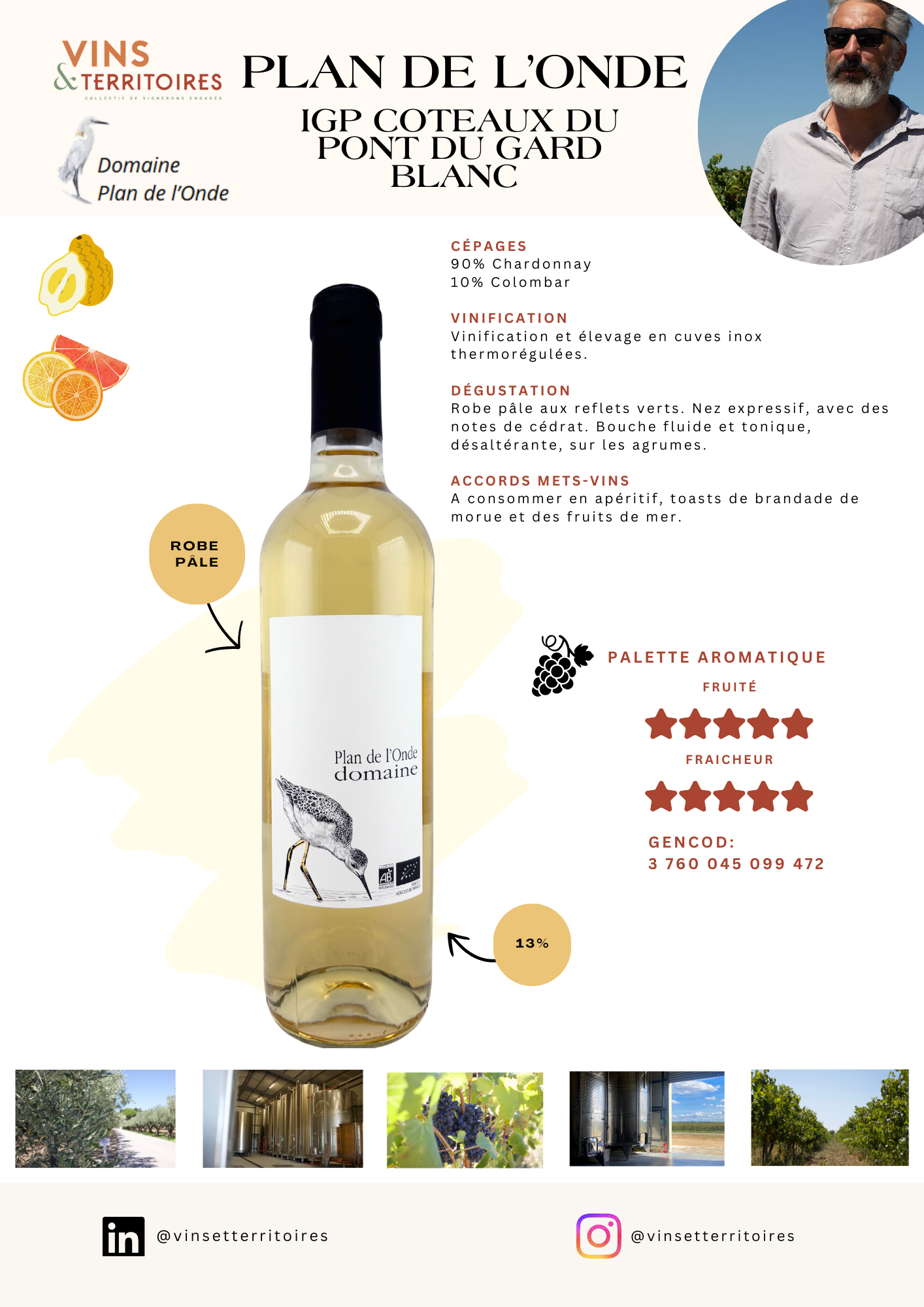 Blanc expressif (agrumes, fruits exotiques) avec finale iodée. Atout originalité grâce au cépage inédit, parfait pour cartes de restaurants de fruits de mer et cavistes voulant surprendre sans dépasser le ticket moyen.