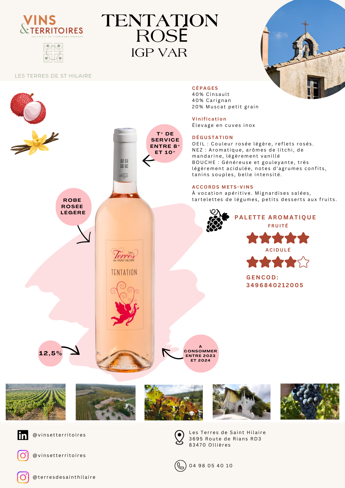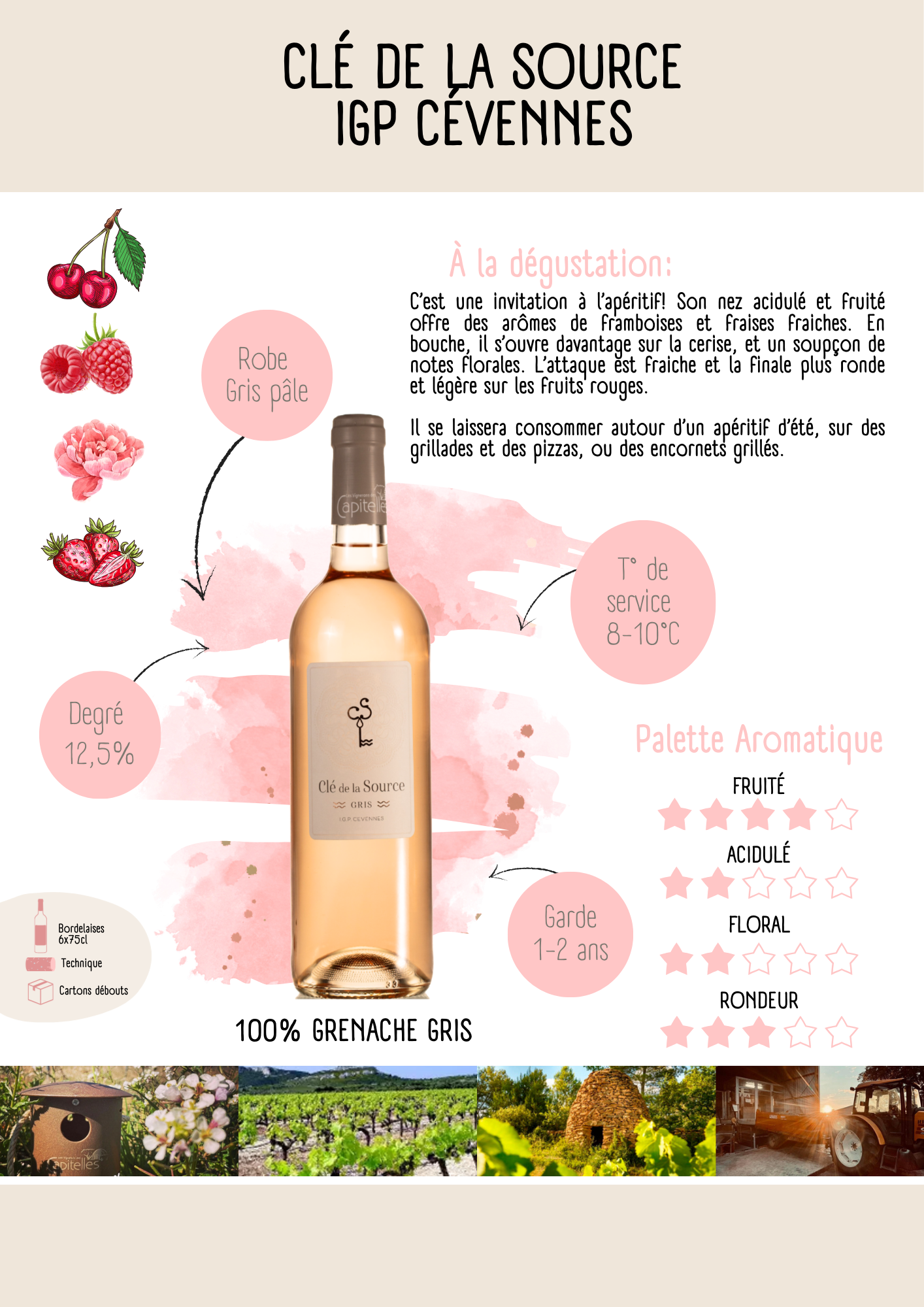 Rosé clair, bouche légère. Produit saisonnier idéal pour CHR, forte rotation en été.