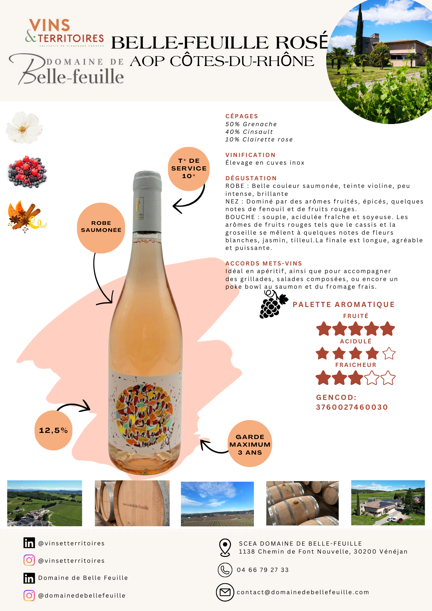 Rosé saumoné, fruits rouges, touche jasmin. Rhône rosé différenciant vs Provence, prix compétitif → rotation solide.